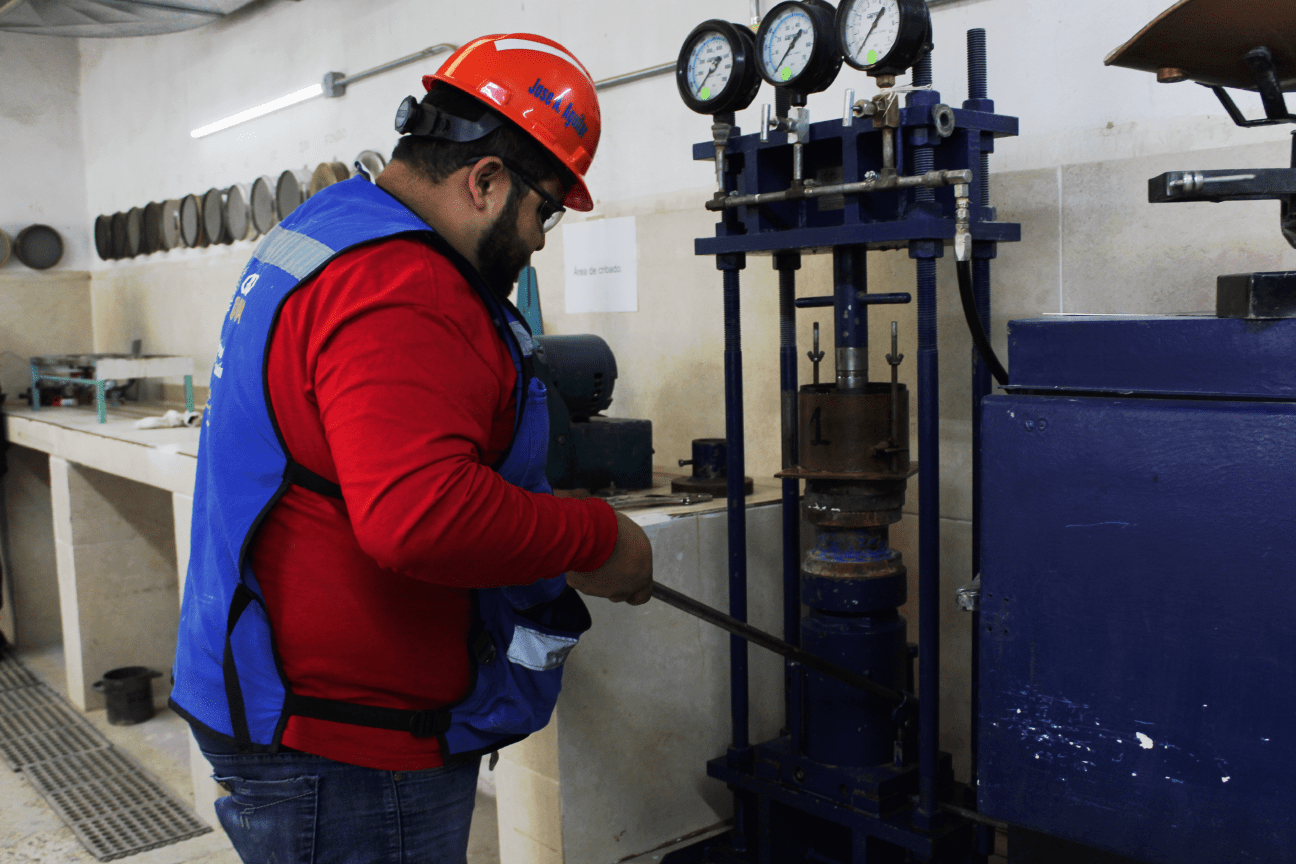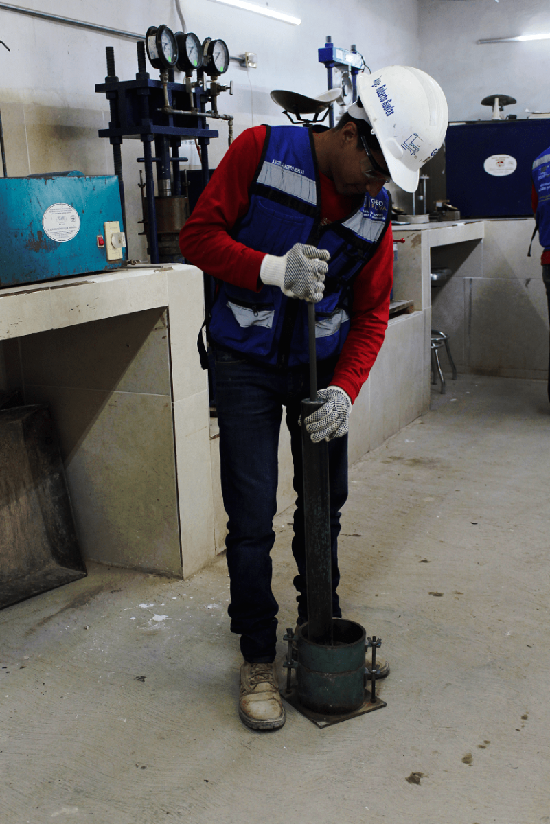 - Prueba de resistencia en compresión en especímenes de roca.